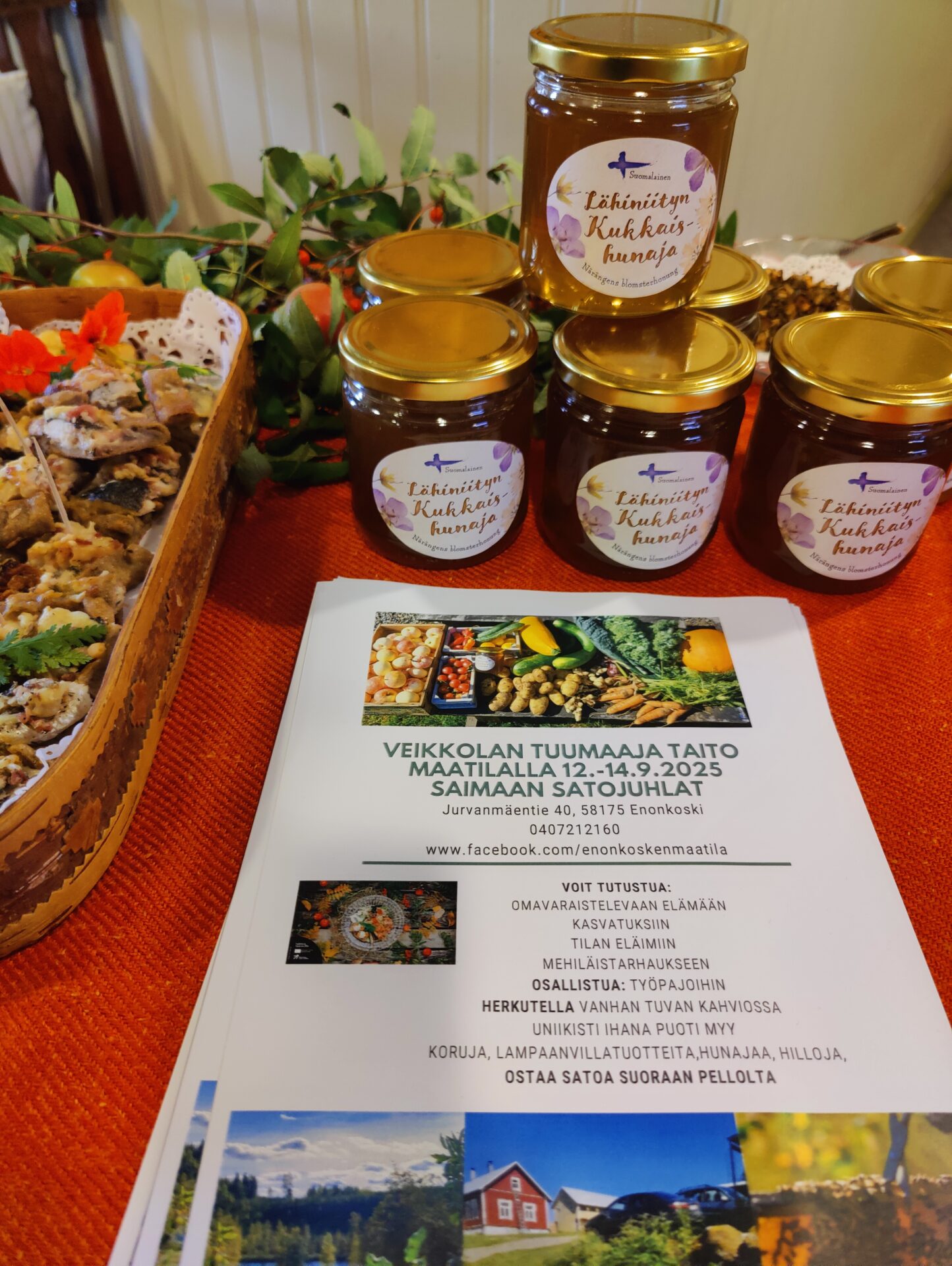 Veikkolan Tuumaaja Taidon oman sadon hunaja toi kesän kielelle. Satojuhlilla omavaraistilalla voi mm. tututua mehiläistarhaukseen, rapsutella eläimiä, tututua omavaraosuuteen sekä tehdä ostoksia tilan sadosta.